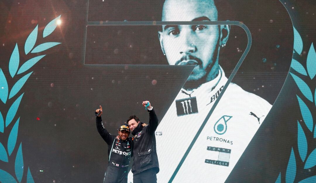 Hamilton se apuntó su séptima corona con otra exhibición, al firmar su décima victoria del año, elevando a 94 su propia plusmarca de triunfos en F1. El británico ganó por delante del mexicano Sergio Pérez (Racing Point), que mejoró un puesto su posición de salida y acabó segundo una carrera con agua en la que el alemán Sebastian Vettel (Ferrari) fue tercero.