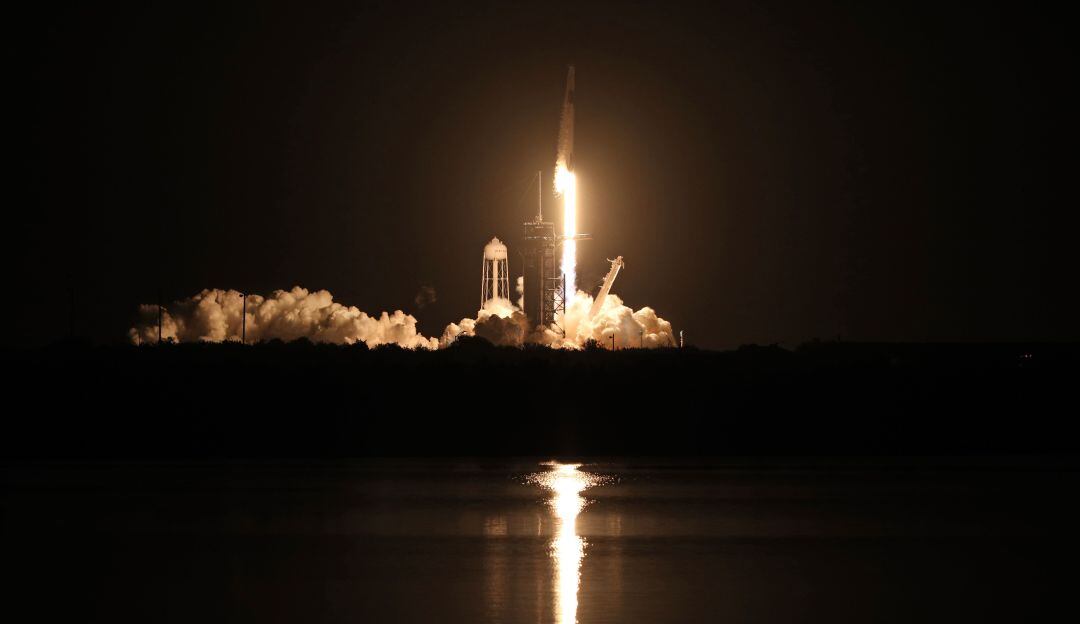 La agencia espacial estadounidense NASA y la compañía privada SpaceX lanzan a la Estación Espacial Internacional su primera misión operacional tripulada a bordo de la nave Crew Dragon. La nave con el cohete portador Falcon 9 despega del Centro Espacial Kennedy en Florida.