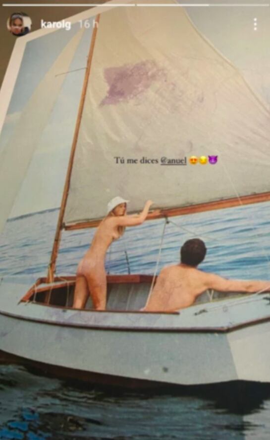 Sin embargo, Karol G compartió una pintura de una pareja desnuda en un velero, etiquetó al cantante y escribió: “Tú me dices Anuel” y agregó algunos emojis de amor.
