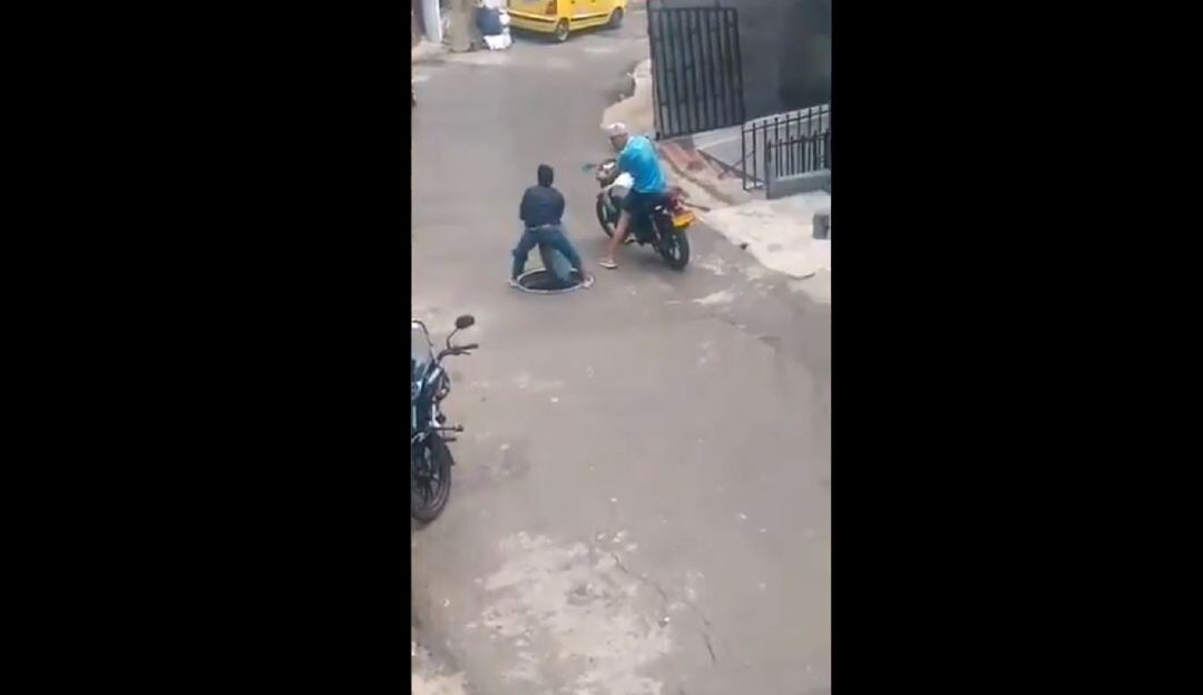 En redes sociales se viralizó un video en el que se ve cómo un sujeto intenta robar una tapa de alcantarillado -al parecer- en Medellín.