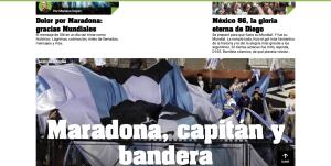 En 'Olé', medio deportivo de Argentina, llenaron de notas a favor del '10': "Maradona, capitán y bandera", "Dolor por Maradona, gracias mundiales", "La gloria eterna del Diego: México 86", entre los más importantes.
