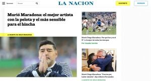 Finalmente, 'La Nación' de Argentina dejó títulos en honor al astro del país: "Murió Maradona: el mejor artista para la pelota y el más senisble para el hincha", "Por qué fue y seguirá siendo el #1", "Gloria eterna", entre otros.