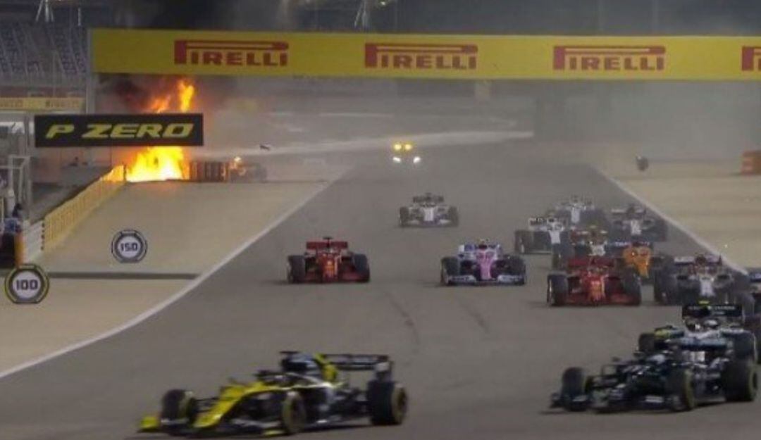 Un impresionante accidente se vivió en el Gran Premio de Bahrain este domingo. El piloto francés del equipo Hass, Romain Grosjean, se estrelló contra un muro y el auto se prendió en fuego en cuestión de segundos.