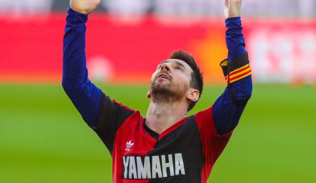 Messi marcó el cuarto gol del cuadro culé al minuto 73, de inmediato, se quitó su camiseta y dejó a la vista la casaca de Newell’s.