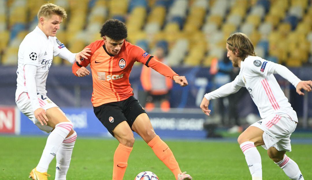 El Shakhtar Donetsk ganó 2-0 al Real Madrid y le arrebató, a falta de una jornada para el final, la segunda plaza del grupo a un conjunto del francés Zinedine Zidane que ya no depende de sí mismo para estar en los octavos de final de la Liga de Campeones.