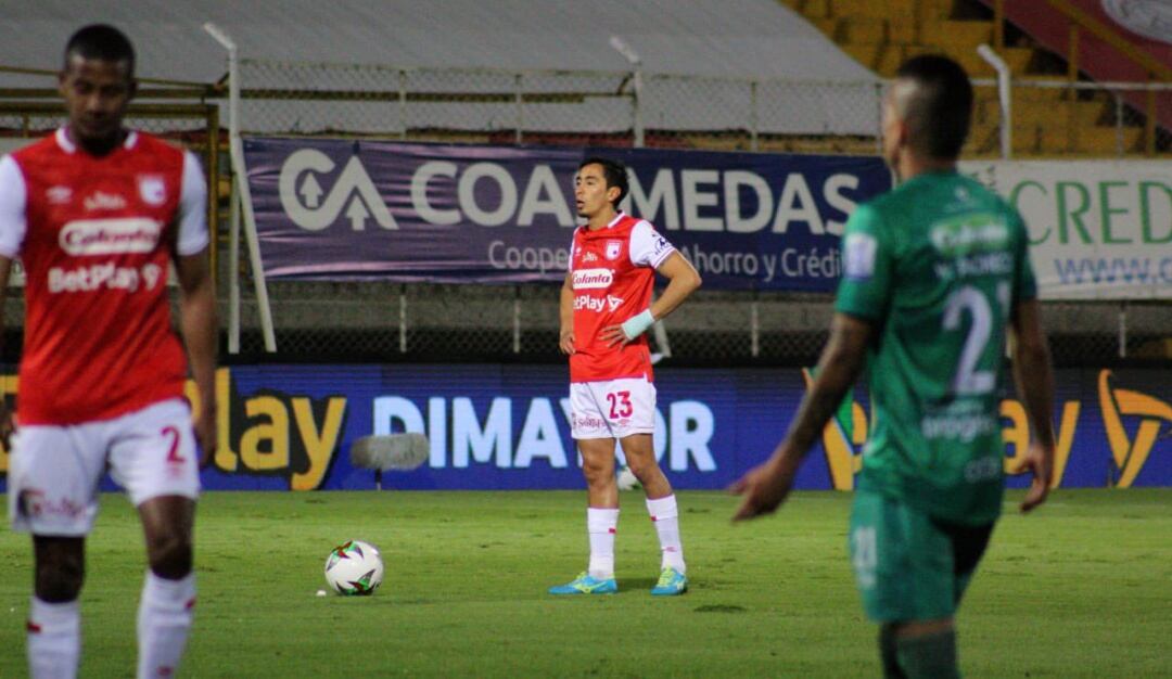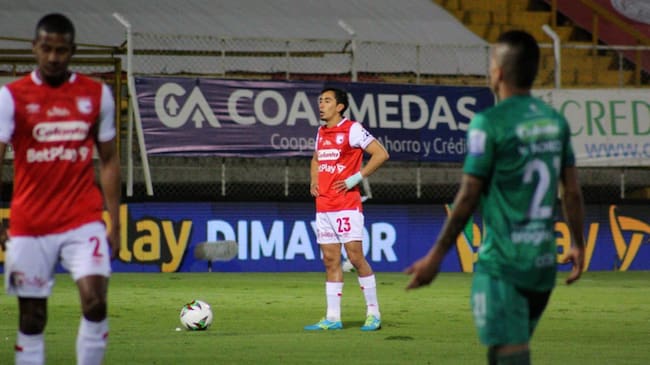 El jugador de Santa Fe fue expulsado en el partido de ida tras un fuerte choque contra Walmer Pacheco de Equidad, jugada que el árbitro Bismarks Santiago revisó en el VAR y sancionó como roja para el 'Chino'.