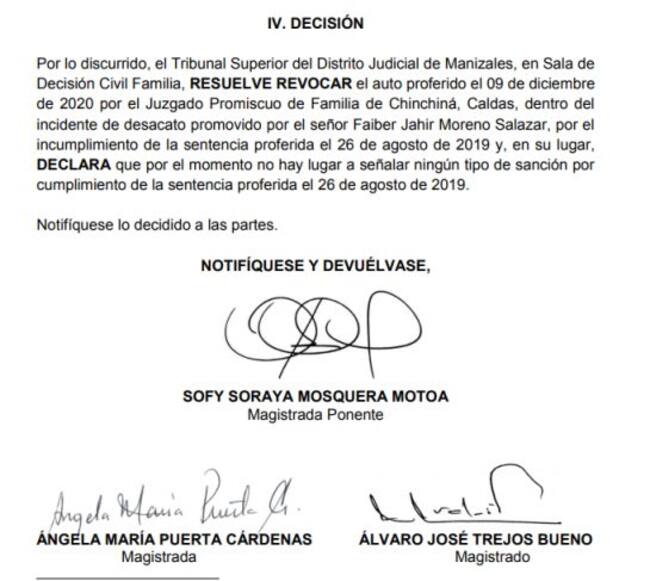 El Tribunal Superior de Manizales tumbó la decisión de un juez promiscuo de Chinchiná, Caldas, que había ordenado tres días de cárcel para el director de la Policía Nacional, el general Óscar Atehortúa, y el ministro de Defensa, Carlos Holmes Trujillo, por un presunto desacato a un fallo de tutela del pasado 26 de agosto de 2019, que les obligaba promover el curso de ascenso al mayor Faiber Moreno.