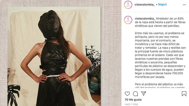 Alrededor de un 63% de la ropa está hecha a partir de fibras sintéticas que vienen del petróleo.(Instagram: @vistecolombia_ )