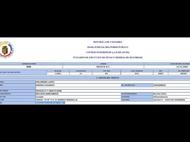 De acuerdo con los registros del juzgado 6 de ejecución de Penas, Ramón Eduardo Palomino fue condenado en abril de 2005, y cumplió su condena en febrero de 2010.