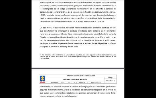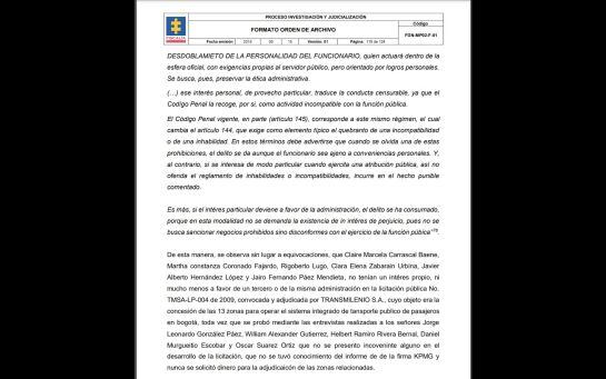“se observa sin lugar a equivocaciones, que Claire Marcela Carrascal Baene, Martha constanza Coronado Fajardo, Rigoberto Lugo, Clara Elena Zabarain Urbina, Javier Alberto Hernández López y Jairo Fernando Páez Mendieta, no tenían un interés propio, ni mucho menos a favor de un tercero (…) nunca se solicitó dinero para la adjudicación de las zonas relacionadas”. Concluyó la Fiscalía