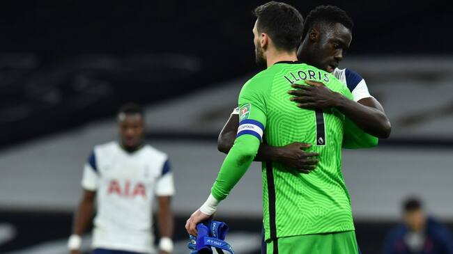 Dávinson Sánchez celebra junto al portero francés Hugo Lloris la clasificación a la final de la Copa. / Getty Images