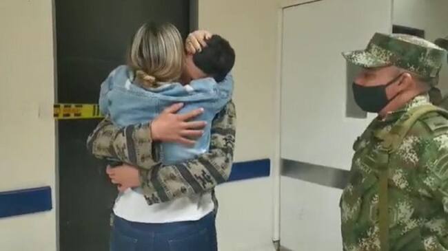 Captura de pantalla del video en el que el joven soldado se encuentra con su madre(Ejército Nacional de Colombia)