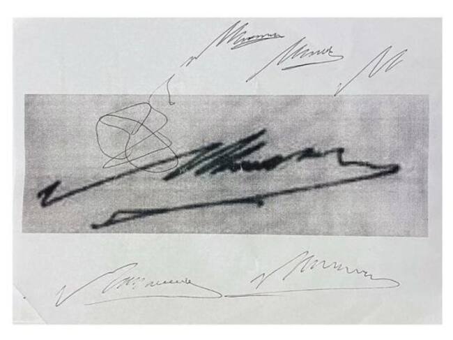 En las imágenes se ve un papel en el que el médico habría practicado varias veces la firma del 10.