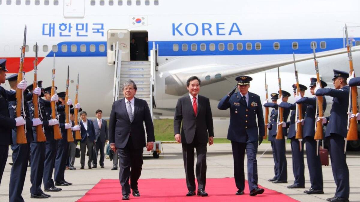 El primer ministro de la República de Corea, Lee Nak-Yeon llegó a Colombia y fue recibido por Carlos Holmes Trujillo cuando era canciller.