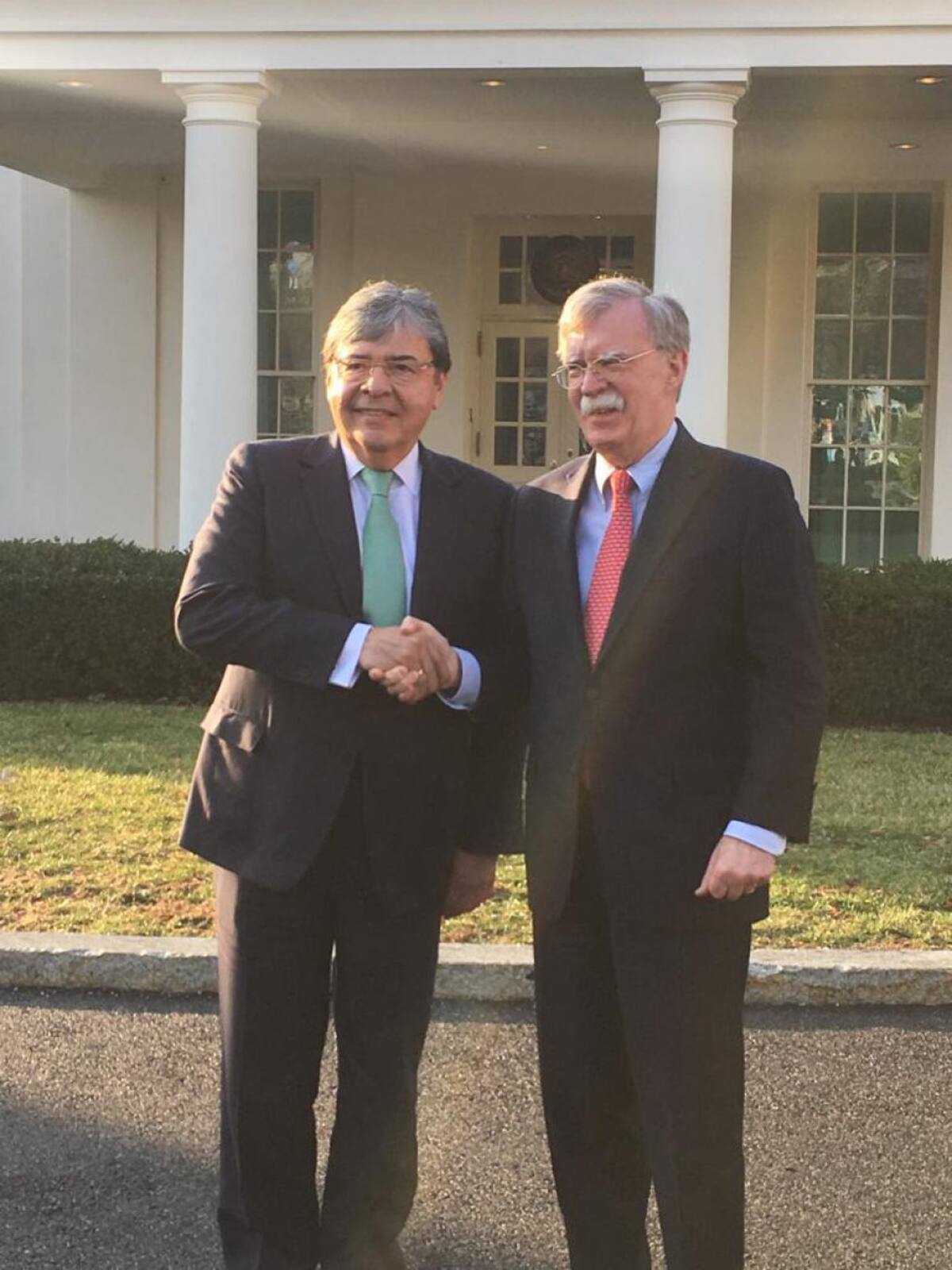 Carlos Holmes Trujillo a la salida de una reunión en la Casa Blanca con el consejero de seguridad, John Bolton.