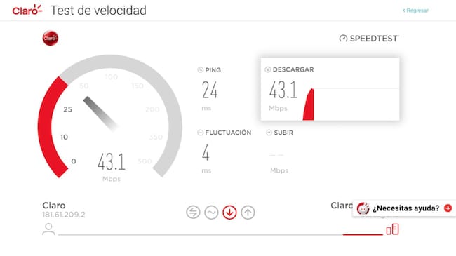 Test de velocidad de Internet (www.claro.com.co)