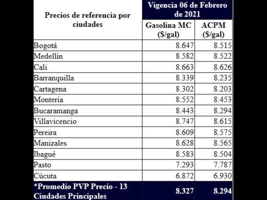 En consecuencia, con este incremento autorizado por el Ministerio de Minas y Energía, el precio promedio de la gasolina se ubicará en 8.327 pesos por galón, mientras que el precio promedio del Diésel será de 8.294 pesos por galón.