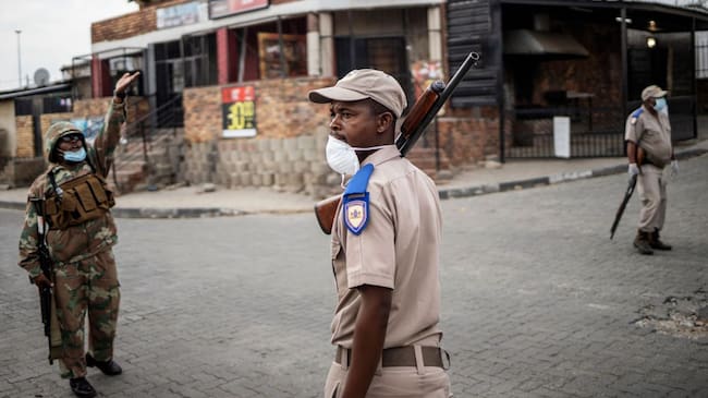 Patrullas armadas vigilan el cumplimiento de la cuarentena en Sudáfrica. (Getty Images)