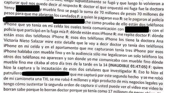 Dice que su fuga la orquestó “la doctora Yensy” una abogada que también fue mencionada en la presunta entrega de $190 millones a un fiscal de apellido Ríos, un señor quien sería uno de los hombres cercanos a ‘Mueble fino’ y un policía de la Estación La Rivera en Cali.