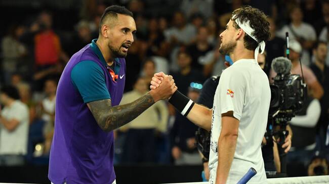 Nick Kyrgios y Dominic Thiem se saludan al final del partido que duró más de tres horas. / Getty Images