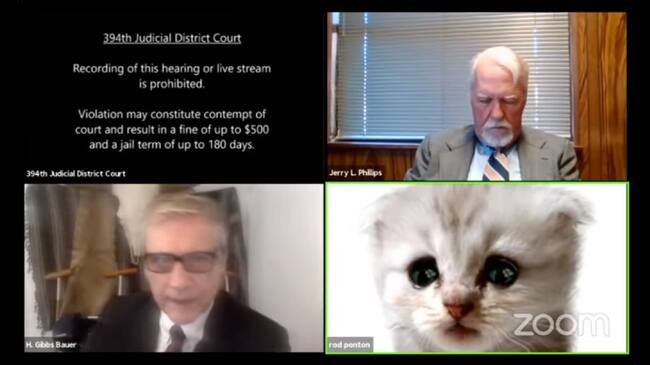 Abogado en Texas activa accidentalmente un filtro en audiencia judicial.