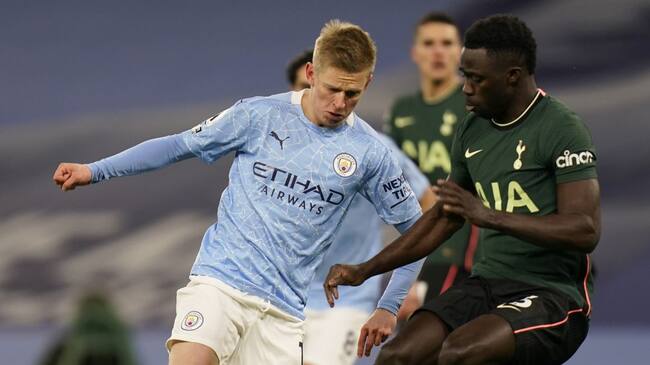 El colombiano Dávinson Sánchez disputa una pelota en la derrota de su equipo frente al Manchester City. / Getty Images