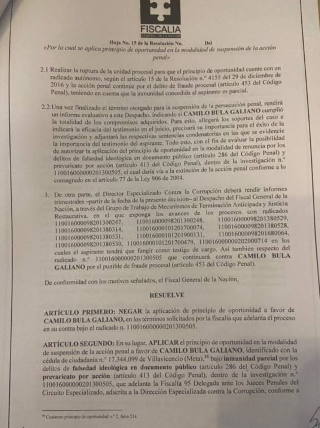 Fiscalía concedió inmunidad penal a Camilo Bula en el caso DNE