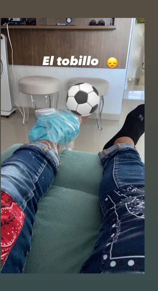 El jugador de Junior FC tiene el tobillo de su pie izquierdo notablemente inflamado.