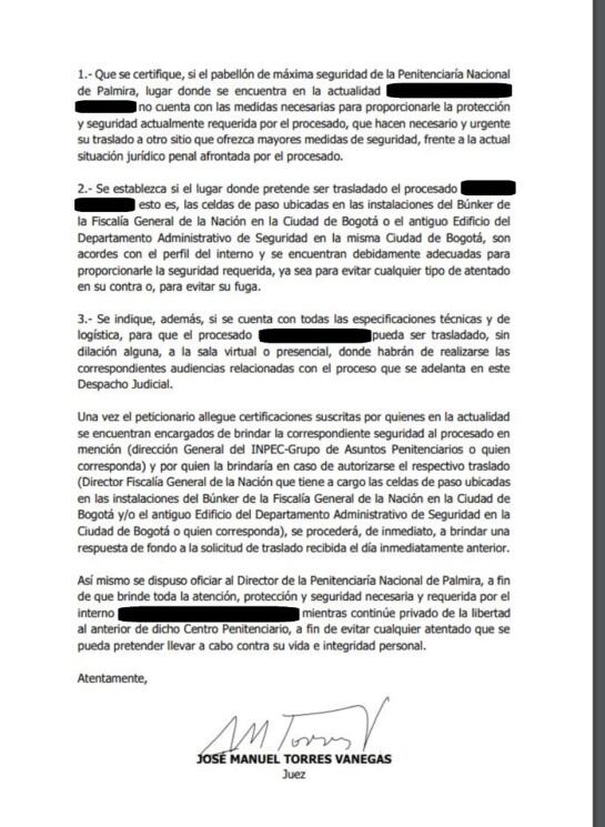 El juez que tiene el proceso penal contra el testigo no ha aprobado el traslado de prisión, porque le exige a un fiscal de Bogotá una certificación