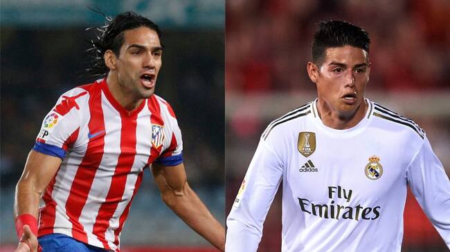 Falcao y James Rodríguez luciendo las camisetas de Atlético de Madrid y Real Madrid resspectivamente / Getty Images