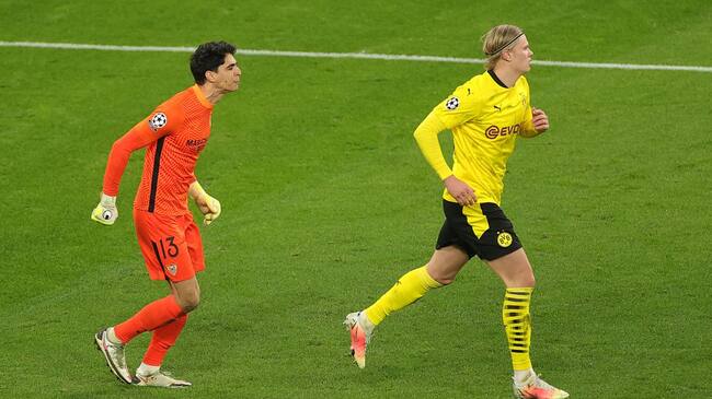 Erling Haaland en una polémica acción con el portero del Sevilla / Getty Images