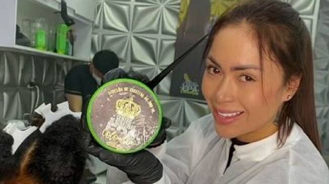 Daneidy Barrera alisó a una chica de cabello crespo probando que su producto estético si funciona.