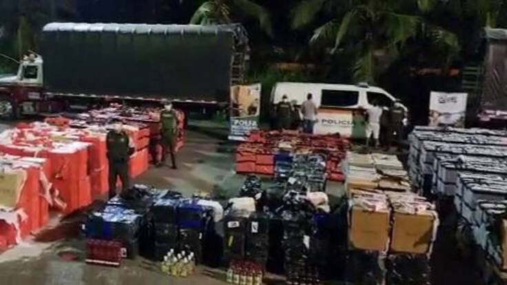 En una operación de la Policía Fiscal y Aduanera (Polfa), en conjunto con uniformados de la Dirección de Tránsito y Transporte, fueron interceptados dos camiones en vías del Urabá antioqueño que transportaban 10 millones de cigarrillos y 2.250 litro de licor de contrabando.