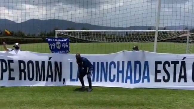 Los hinchas de Millonarios no desamparan a Andrés Felipe Román durante la difícil situación que le ha tocado vivir tras el paso fallido a Boca Juniors de Argentina. Un grupo de aficionados lo espero este viernes a la salida de la sede deportiva del equipo, para expresarle su cariño y apoyo.