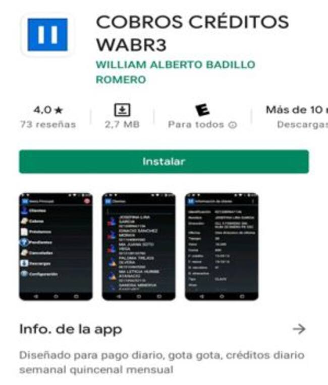 Lo más insólito del caso es que la red delincuencial creó su propia aplicación móvil llamada “COBROS WABR3”, para seguir a sus víctimas y hacer un balance en tiempo real de las actividades de recaudo y préstamo.