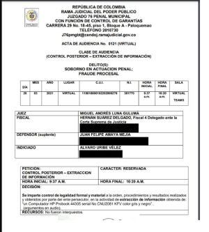 Se definirá si esa información se tendrá en cuenta o no para la audiencia del caso Uribe el próximo 6 de abril