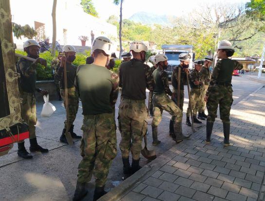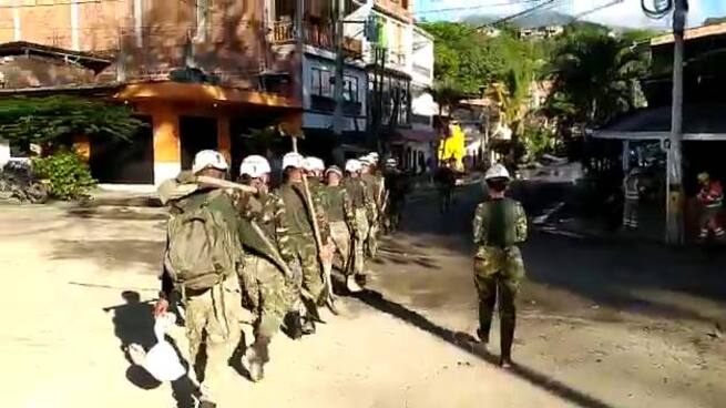 “Asimismo, monitoreamos fuentes hídricas que están en niveles altos por las lluvias. Trabajamos de la mano de diferentes organismos de socorro para proteger la población. Aquí seguiremos hasta recuperar totalmente las zonas afectadas”, dijo la oficial mientras estaba con sus soldados recogiendo material.
