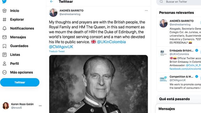 Critican mensaje de Andrés Barreto sobre muerte del Duque de Edimburgo