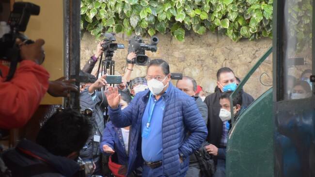 El presidente boliviano, Luis Arce, asiste a votar en las elecciones subnacionales hoy, en La Paz, Bolivia.(EFE)