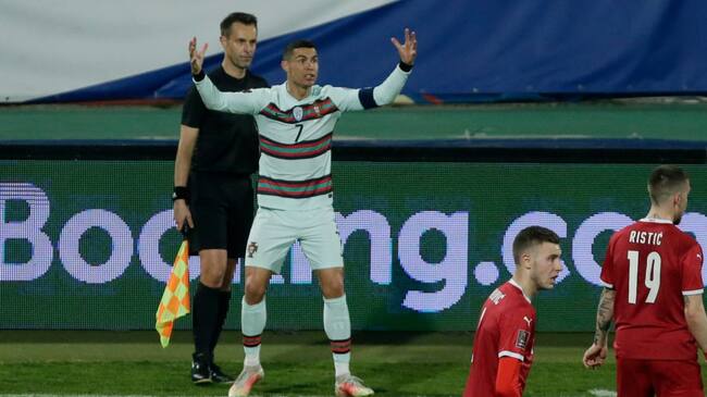 La polémica jugada sucedió en el partido Serbia-Portugal, cuando un defensor despejó un remate de Cristiano tras pasar la línea de gol.