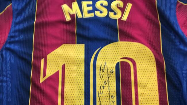 En las fotografías publicadas por el Director de Desarrollo se ve que las camisetas tienen el número 10 en la espalda, tienen el apellido "Messi" impreso y sobre el número se aprecia la firma del cinco veces balón de oro y la frase "con cariño".