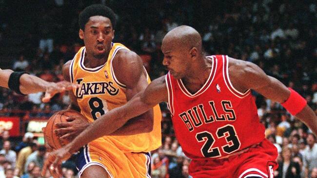 Kobe, que logró cinco campeonatos con los Lakers, tenía a Jordan como su ídolo de infancia y fue considerado su mejor heredero en la pista.