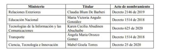 Gobierno Nacional dice cumplir con la cuota legal de mujeres en el Gabinete