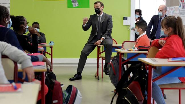 El presidente Emmanuel Macron visitó un centro educativo para verificar que estén cumpliendo las medidas y protocolos para que el proceso sea seguro.