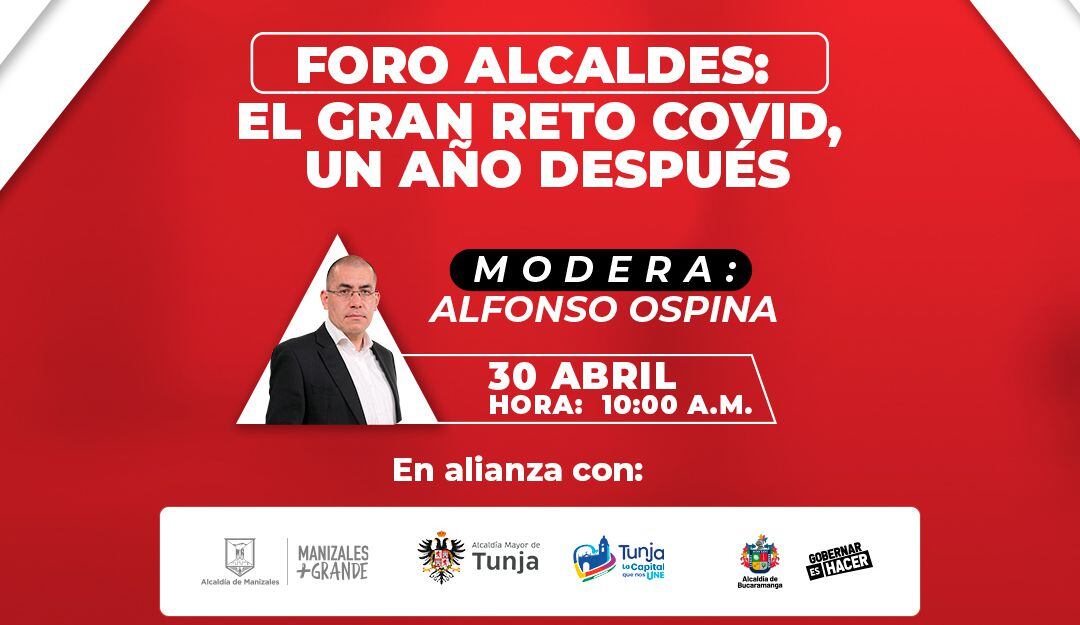 En el espacio que se emitirá este viernes 30 de abril a las 10:00am, participarán los alcaldes de Bogotá, Claudia López; de Manizales, Carlos Mario Marín; de Tunja, Luis Alejandro Fúneme y de Bucaramanga, Juan Carlos Cárdenas.