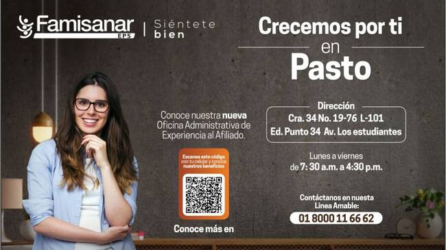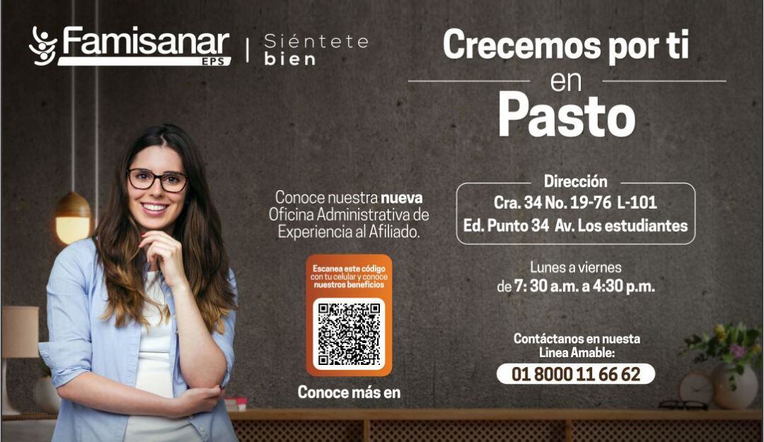 Desde el pasado 23 de abril una nueva Oficina Administrativa de Experiencia llegó a l departamento de Nariño para que, los afiliados de Famisanar, la EPS número uno en Bogotá y Cundinamarca, siga prestando sus servicios a lo largo y ancho del territorio nacional.