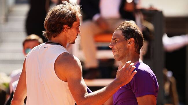 Alexander Zverev y Rafael Nadal se despiden tras el triunfo del alemán. / Getty Images / Clive Brunskill