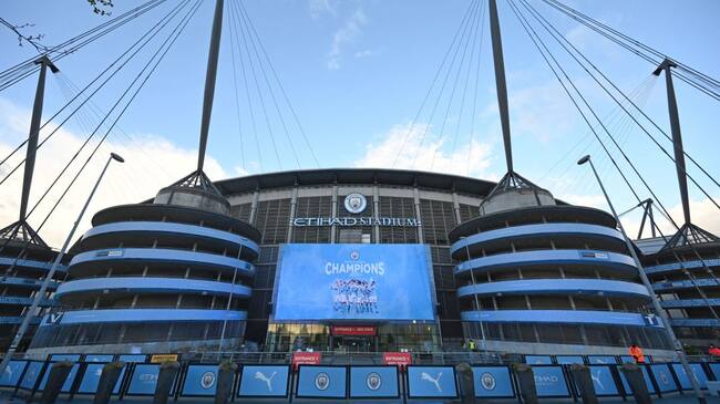 El Etihad Stadium luce la imagen del Manchester City campeón. / Getty Images / PAUL ELLIS