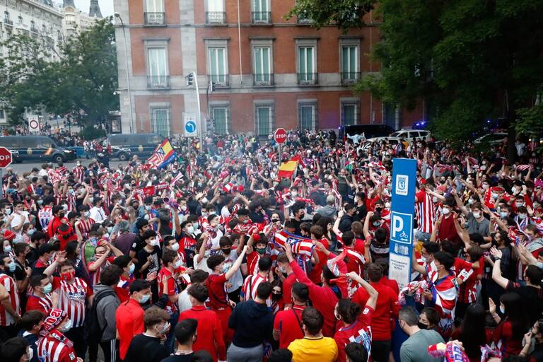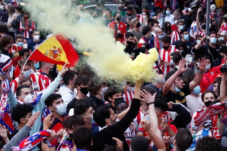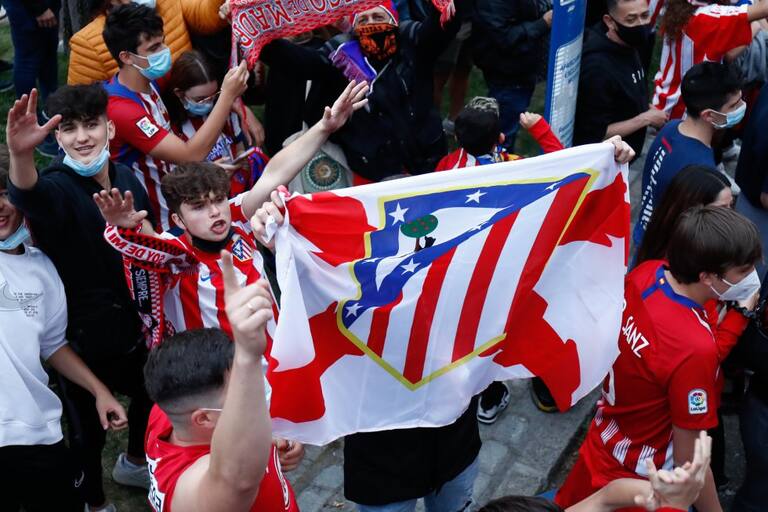 Hinchas del Atlético Madrid celebran efusivamente su título 11° de Liga