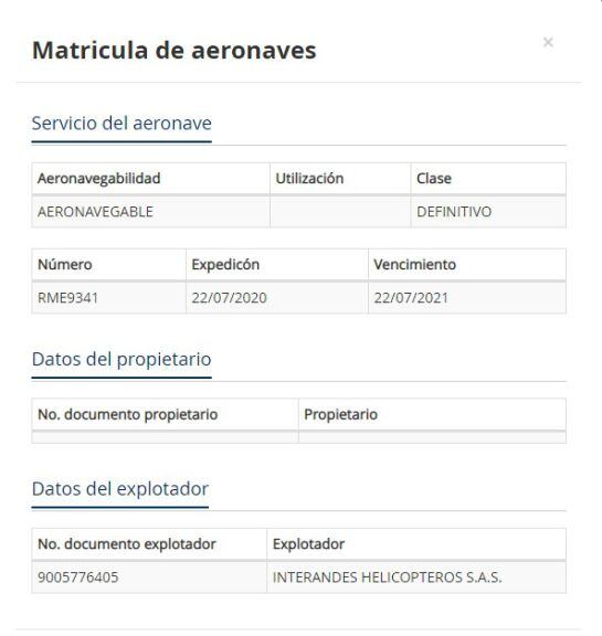 Consulta en la base de datos de la página de la Aeronáutica Civil.